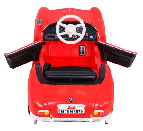 Autko BMW 507 Retro elektryczne dla dzieci Czerwony + Audio LED + Pilot + Ekoskóra + EVA + Wolny Start