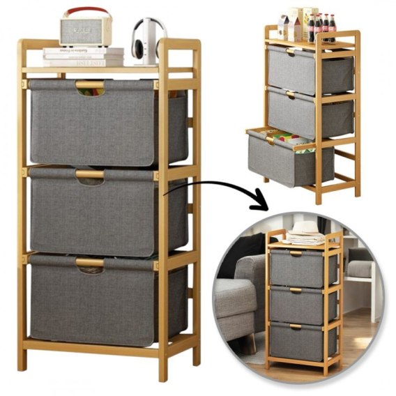 Bambusowy regał, szafka z materiałowymi szufladami SZ43