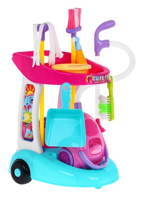 Duży Wózek sprzątający dla dzieci 3+ Interaktywny odkurzacz + Mop Miotła Szufelka + Akcesoria 10 el.
