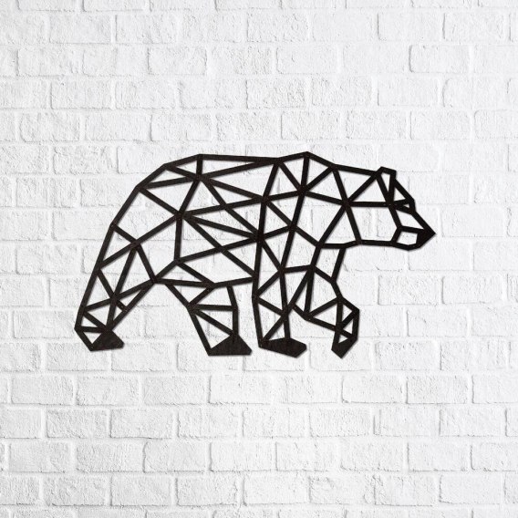Wielokątne puzzle w kształcie niedźwiedzia, które urozmaicą wygląd każdego domu bądź biura. Zestaw został wykonany z wysokiej jakości sklejki i jest w postaci arkuszy z wstępnie wyciętymi i ponumerowanymi elementami. Przed montażem, należy oddzielić części od wykroju, a następnie połączyć bez użycia kleju, zgodnie ze szczegółową instrukcją dołączoną do opakowania. Dekorację montuje się na ścianie za pomocą taśmy dwustronnej lub gwoździ. Model zaprojektowany i wykonany w Europie.