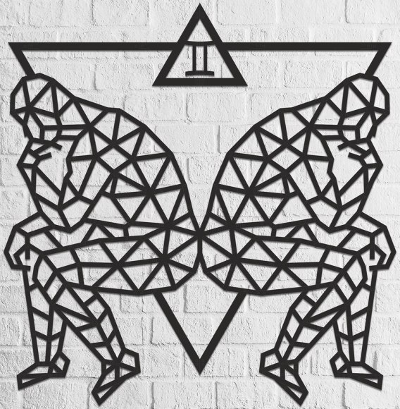 Wielokątne puzzle w kształcie znaku Bliźniąt, wykonane z wysokiej jakości sklejki, które urozmaicą wygląd każdego domu bądź biura. Zestawy mają postać arkuszy z wstępnie wyciętymi i ponumerowanymi elementami. Przed montażem, należy oddzielić części od wykroju, a następnie połączyć bez użycia kleju, zgodnie ze szczegółową instrukcją dołączoną do opakowania. Dekorację montuje się na ścianie za pomocą taśmy dwustronnej lub gwoździ. Model zaprojektowany i wykonany w Europie.