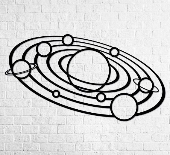 Wielokątne puzzle w kształcie Układu Słonecznego, które urozmaicą wygląd każdego domu bądź biura. Zestaw został wykonany z wysokiej jakości sklejki i jest w postaci arkuszy z wstępnie wyciętymi i ponumerowanymi elementami. Przed montażem, należy oddzielić części od wykroju, a następnie połączyć bez użycia kleju, zgodnie ze szczegółową instrukcją dołączoną do opakowania. Dekorację montuje się na ścianie za pomocą taśmy dwustronnej lub gwoździ. Model zaprojektowany i wykonany w Europie.