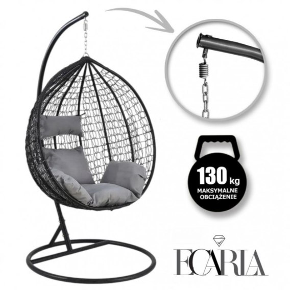 Fotel wiszący, huśtawka kokon czarny z grafitowymi poduszkami KR23