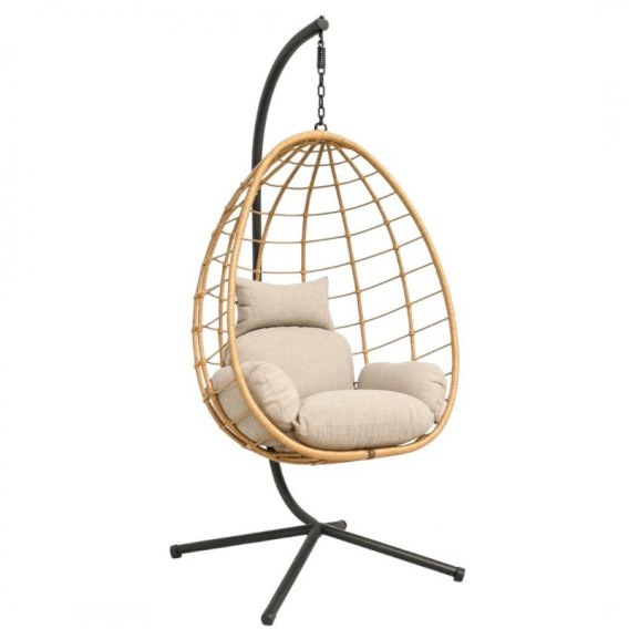 Fotel wiszący huśtawka, kokon składany brązowy z beżowymi poduszkami KR37BR