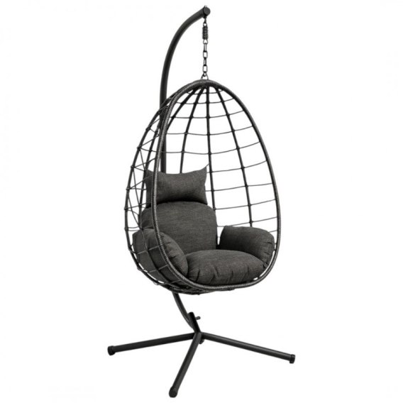 • Fotel wiszący huśtawka, kokon składany czarny, antracyt z poduszkami KR37GRAF