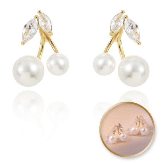Kolczyki WISIENKI ze stali szlachetnej pozłacanej 14k złotem cyrkonie, perły KST3334