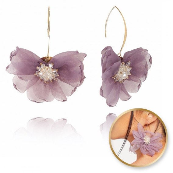 Kolczyki wiszące z kryształkami tiulowe kwiaty 10x8cm K1675FIO