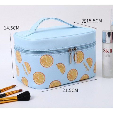 Kosmetyczka rozkładana niebieska pomarańcze kuferek KS59