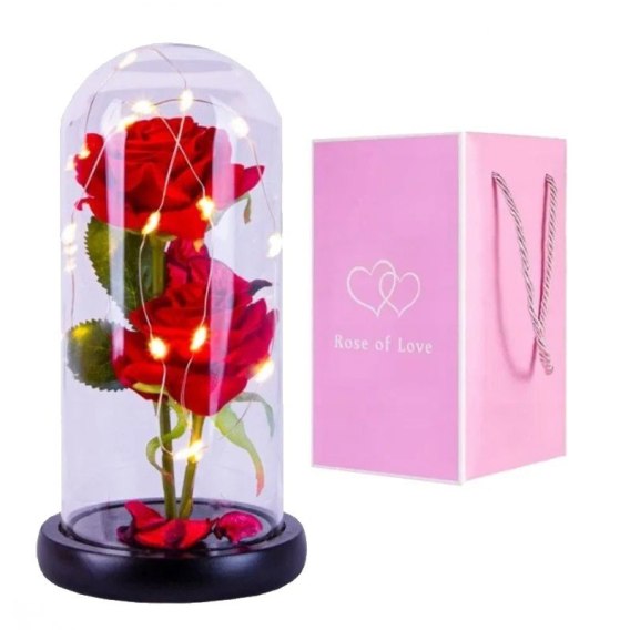 • Kryształowa wieczna róża pod szklaną kopułą LED ROZ12
