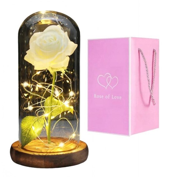 Kryształowa wieczna róża pod szklaną kopułą LED ROZ16
