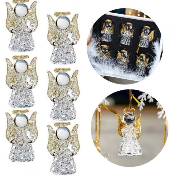 • Kryształowe Aniołki wiszące złote, bombki zestaw 6szt w pudełku Boże Narodzenie BSN21