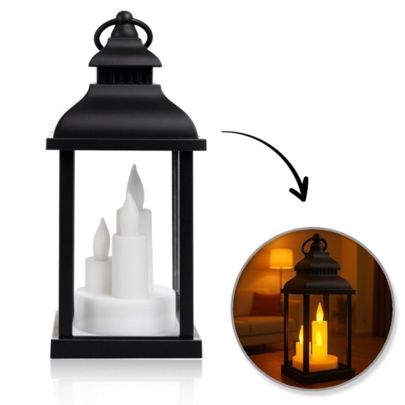 Lampion dekoracyjny LED z imitacją świec Stylowy czarny lampion z tworzywa sztucznego z realistyczną imitacją świec LED.
