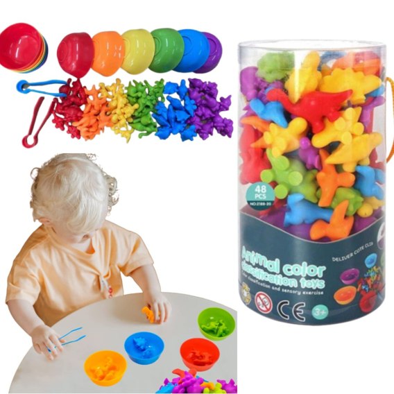 Zadaniem dziecka jest dopasowanie każdego dinozaura do kubka w odpowiednim kolorze. Ta prosta gra uczy dzieci rozpoznawania kolorów, a także pomaga im w rozwijaniu umiejętności motorycznych, ponieważ muszą umieścić każdego dinozaura w odpowiednim kubku.