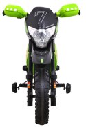 Motorek Cross dla dzieci Pojazd na akumulator Zielony + Pomocnicze kółka + Dźwięki LED