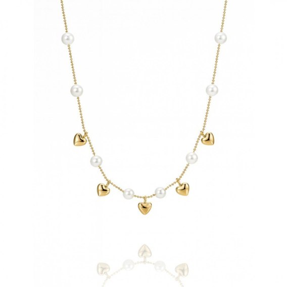 Naszyjnik Długi stal szlachetna pozłacana 14k złotem, perełki i serduszka NST2235