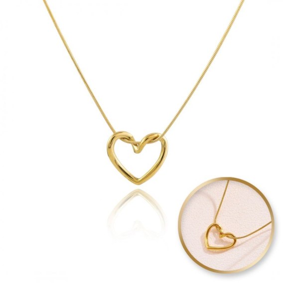 Naszyjnik SERCE stal szlachetna pozłacana 14k złotem, żyłka NST2152
