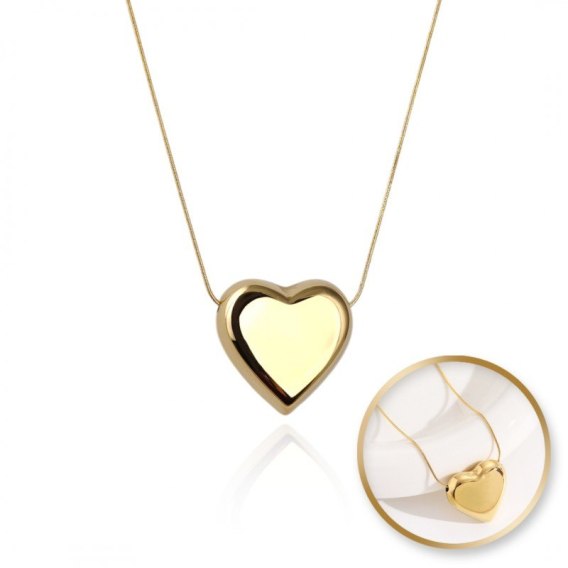 • Naszyjnik SERCE stal szlachetna pozłacana 14k złotem, żyłka NST2177