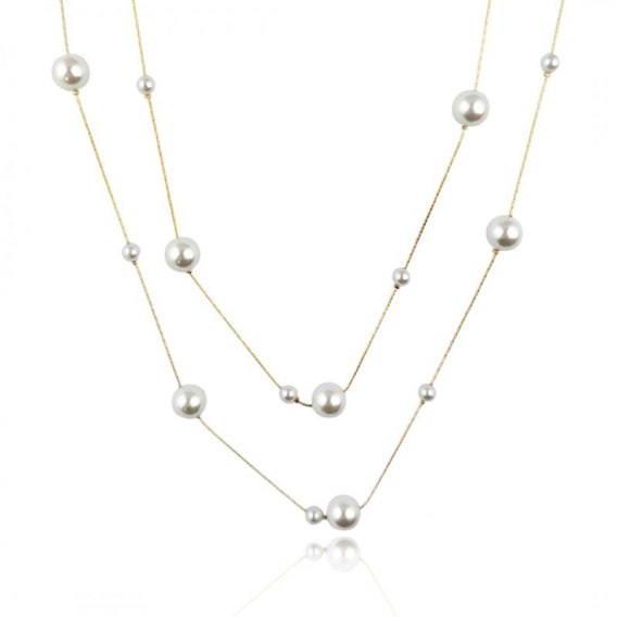 Naszyjnik długi podwójny stal szlachetna pozłacana 14k złotem PEREŁKI NST2189