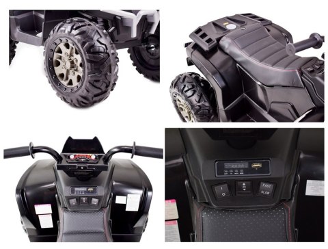 Wygląd quada przypomina prawdziwe pojazdy z tej grupy. Duże koła zapewniają komfort jazdy, a wygodne siedzenie wygodną podróż !