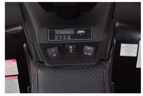 Panel z dźwiękami, wejściem na USB oraz oświetlenie pojazdu umili o urazmaici zabawą.