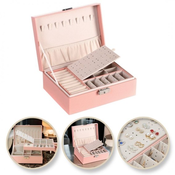 Szkatułka na biżuterię, etui, organizer, pudełko różowa PD155R
