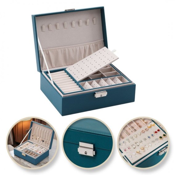 Szkatułka na biżuterię zielona, etui, organizer, pudełko PD155ZIE