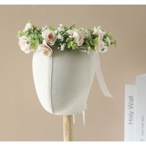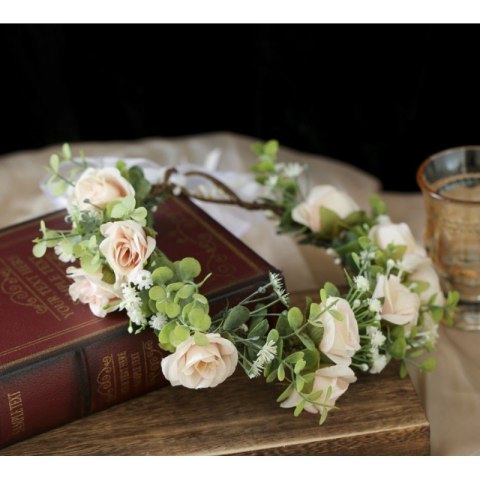 Romantyczny wianek na głowę z wysokiej jakości kwiatów sztucznych.
