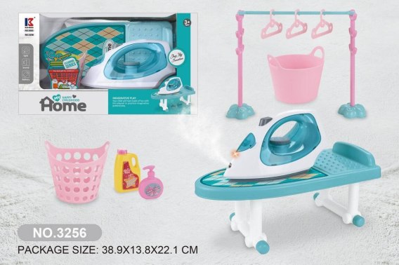 Żelazko w zestawie to nie takie zwykłe żelazko, gdyż można je napełnić wodą, a podczas zabawy dziecko może nacisnąć odpowiedni przycisk, aby wydobyćparę wodną, dokładnie tak, jak w prawdziwym żelazku! To świetny sposób, aby dzieci mogły udawać, że prasują ubrania tak jak dorośli.